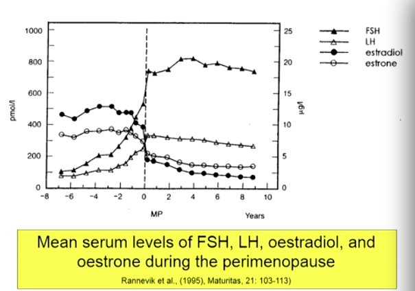 Its the peri-menopause where we see the clinical symptoms, the longer and more irregular menstrual cycles