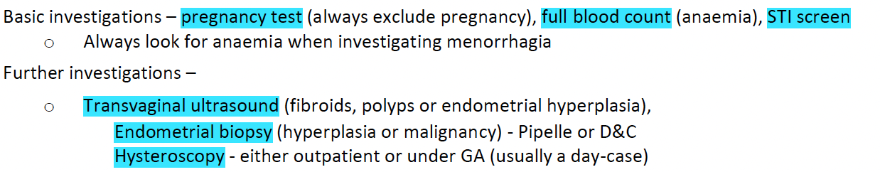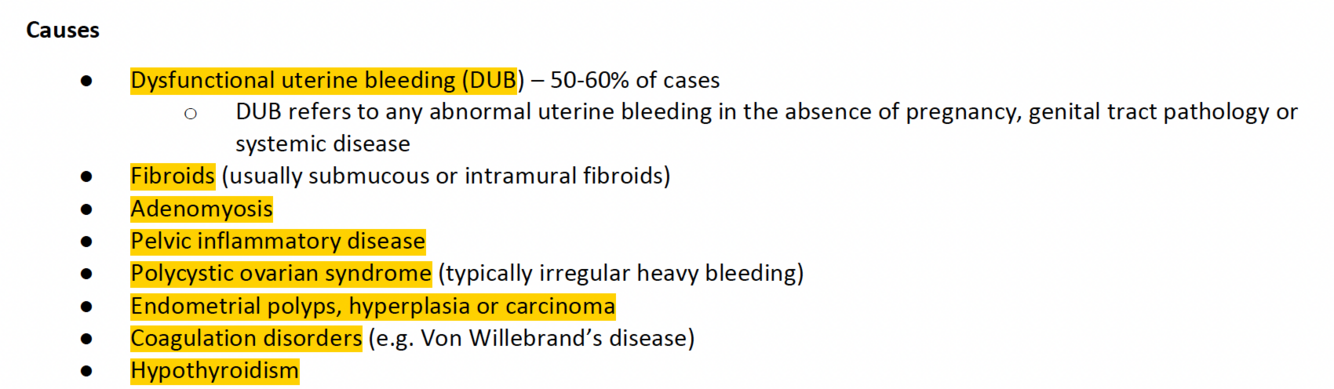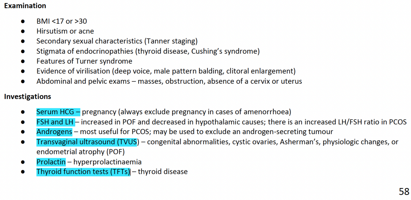 * Pregnancy (Always exclude pregnancy in cases of amenorrhoea)