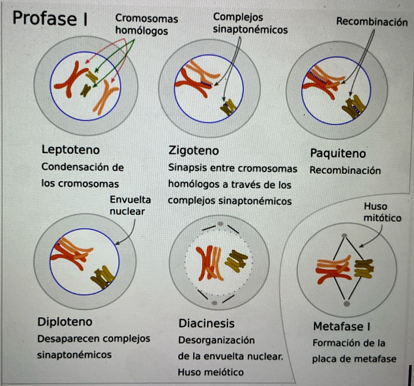 Durante esta fase ocurre el apareamiento de los cromosomas homólogos y el entrecruzamiento, que genera variabilidad genética.