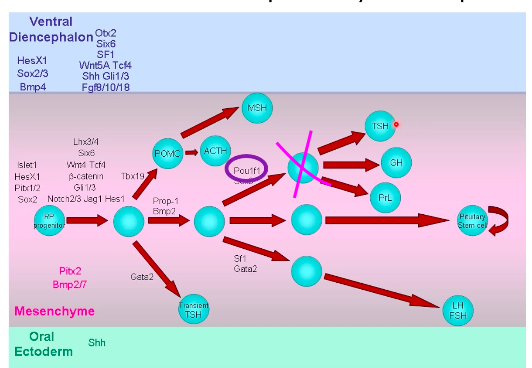 The anterior pituitary reqiures which transcription factors to develop? [1]