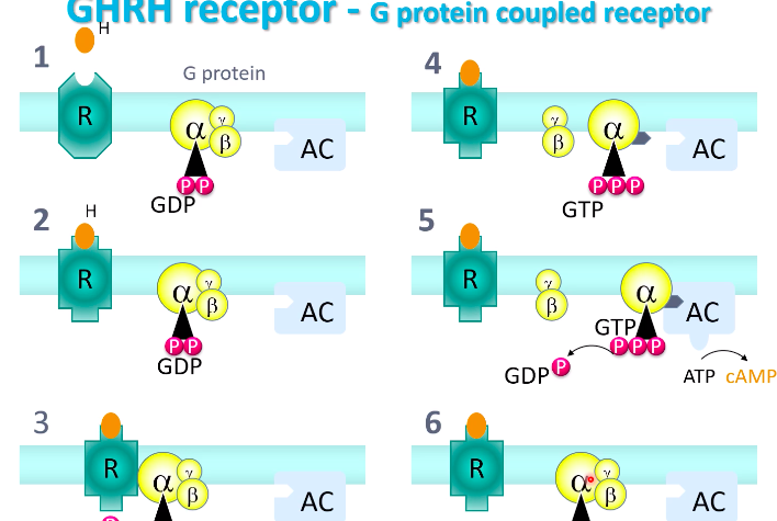- cuts off a phosphate / hydrolises GTP to GDP which originally activated the alpha subunit (regulatory step: so that adenylyl cyclase isnt continually switched on
