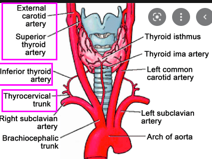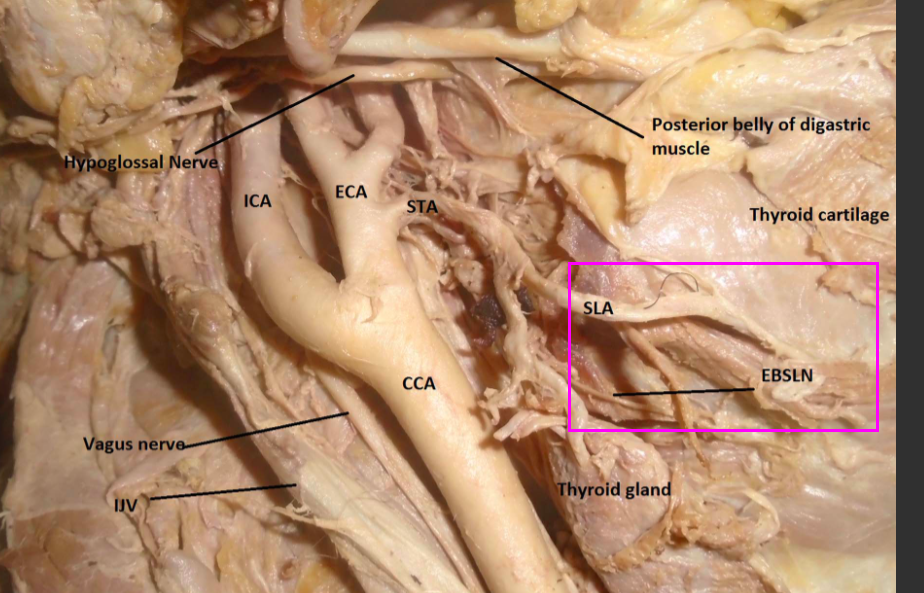Superior thryoid artery is close to the external laryngeal nerve at its origin: have to ligate superior thyroid artery near superior pole of thyroid
