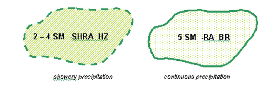 A dashed line enclosing an area of diagonal lines on a clouds and weather GFA chart represents…