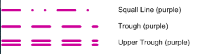 Winds are shown on the GFA (Clouds & Weather) charts whenever they are forecasted to be ___kts or greater and visibility is shown when it’s forcasted to be ___sm or less.