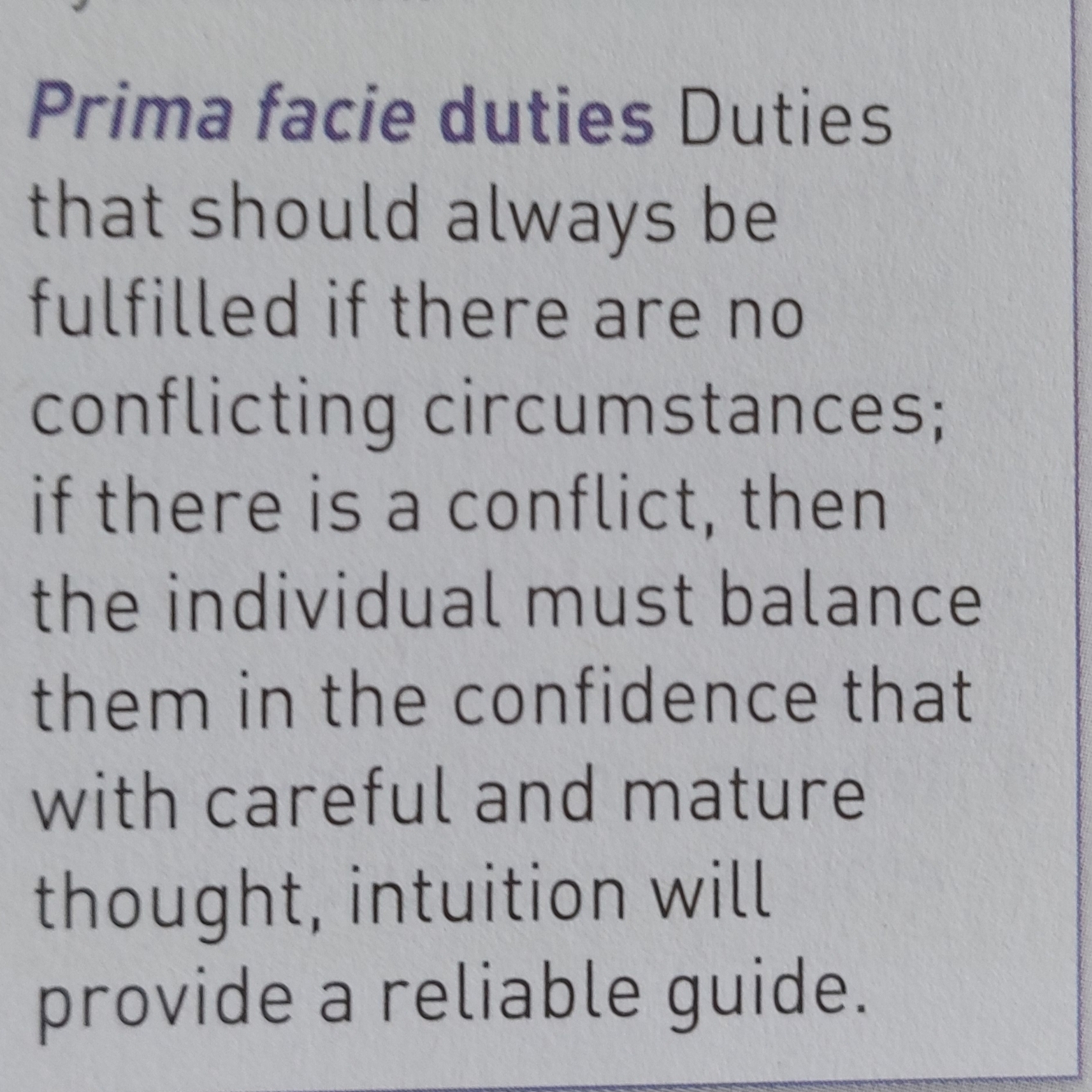 W.D. Ross and ‘ prima facie’ duties.