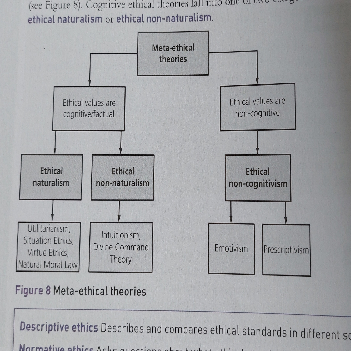 Normative ethics are ethical theories which attempt to devise a system which enables us to determine which actions are good and which are bad. Natural Law, Situation ethics, Virtue ethics, Utilitarianism and Kantian ethics are all normative theories. They are also meta- ethical theories as they debate what good is and reach a conclusion.