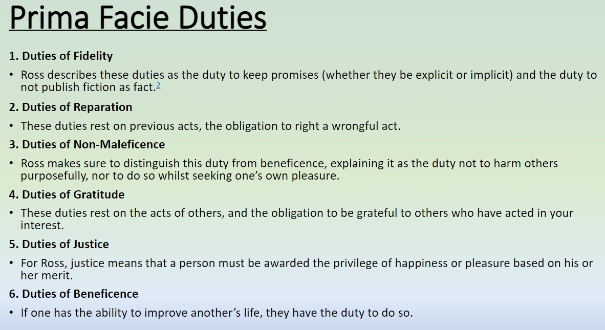 What are Prima Facie Duties?