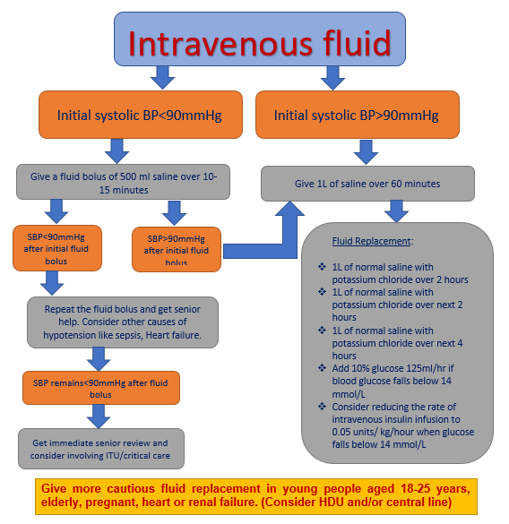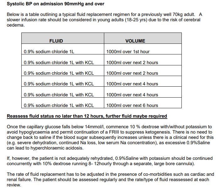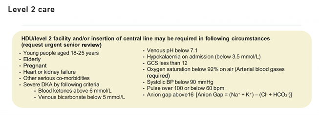 In these situations admission to a Level 2 / HDU facility should be considered. Fluids should be replaced cautiously
