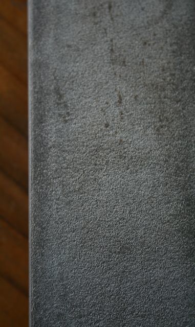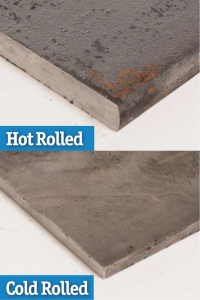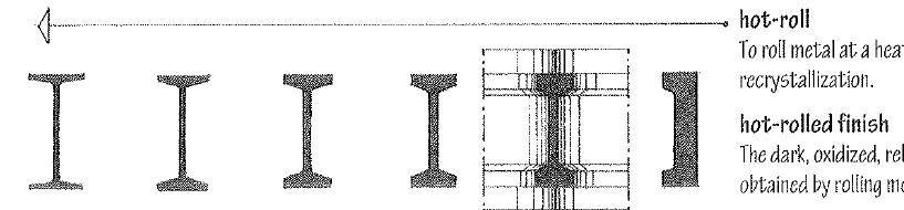 The dark, oxidized, relatively rough finish obtained by rolling metal while hot.