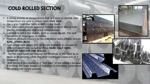 To roll metal at a temperature below that at which recrystalization occurs, so as to increase its tensile strength or improve its surface finish.