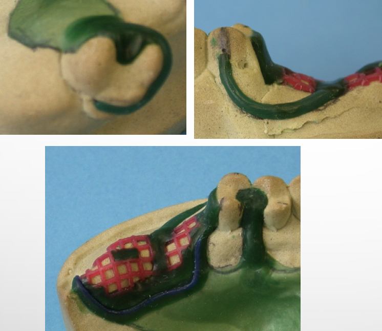 abasion of the cast - must be attended to by the technician (tooth enamel is much harder and will not ‘give’)