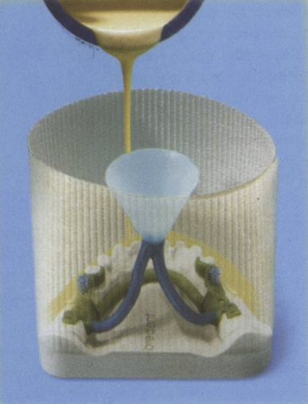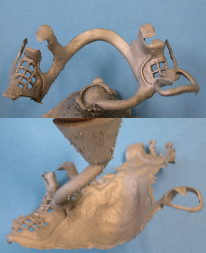 wax patterns with wax designs of clasps, major connectors and molten wax then the lost wax technique is carried out