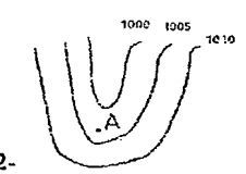 122- Kuzey yarıkürede “A” noktasında seyirdesiniz; ne tip izobar şeklinin etkisindesiniz, karşılaşabileceğiniz ve dikkat etmeniz gereken meteorolojik olay ne olabilir?