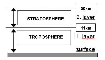002 In the picture below layers of the atmosphere are shown. Enter the correct names and upper limits (in km).