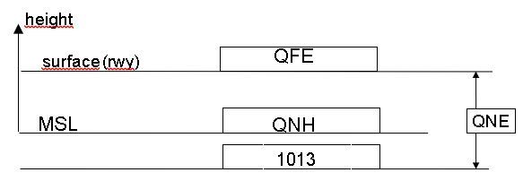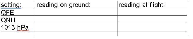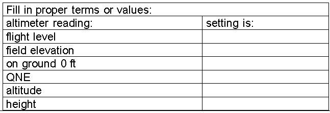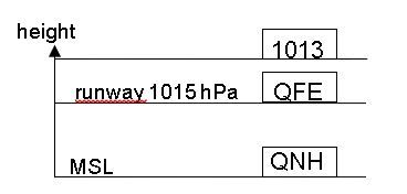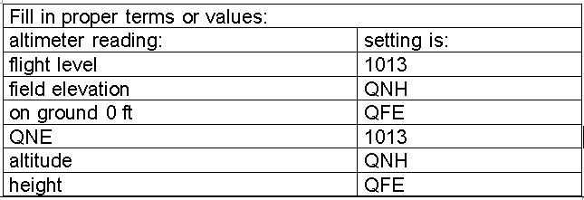 013 Enter QFE, QNH and pressure level 1013 into the correct place: