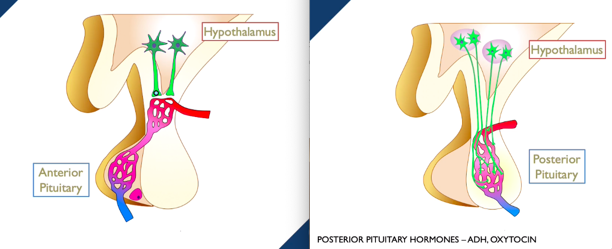 how does hypothalamus communicate with the anterior pit. gland? and posterior pit gland?