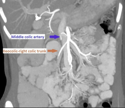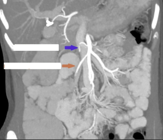 describe pathway of common hepatic artery –> hepatic artery proper —> ?? :)