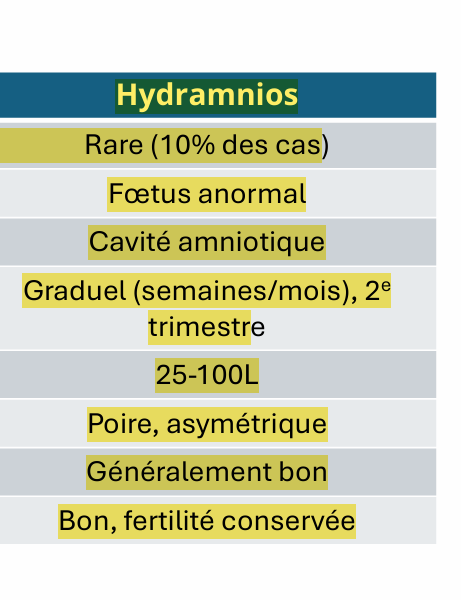 =>Deux formes distinctes : **hydrallantoïde (cavité allantoïdienne) **et hydramnios (cavité amniotique)