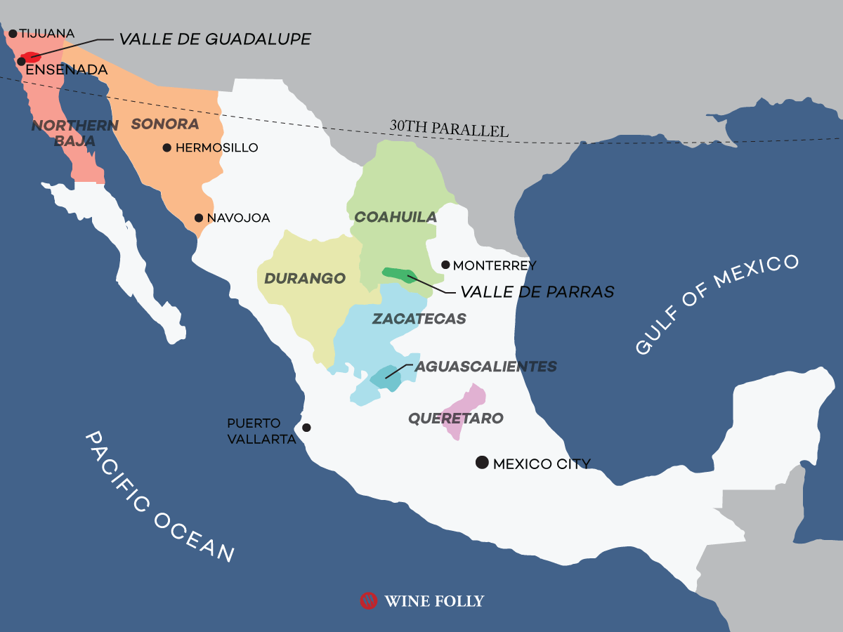 Coahuila is located to the east of Baja and Sonora, bordering Texas. Production areas include Arteaga, Saltillo, and Parras de la Fuente.