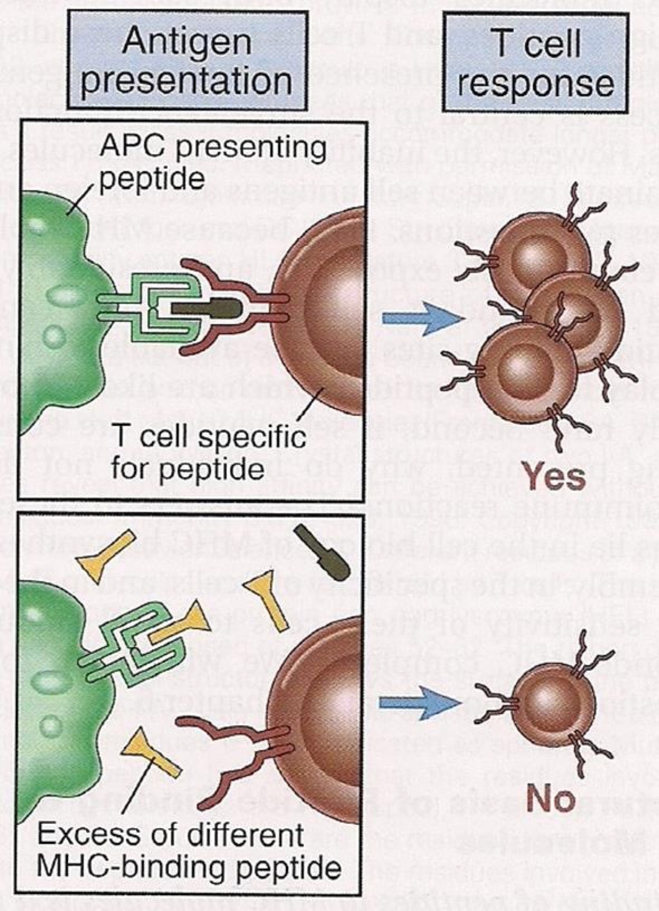 -diff peptide binds to same MHC = inhibits presentation of peptide that the T cell recog