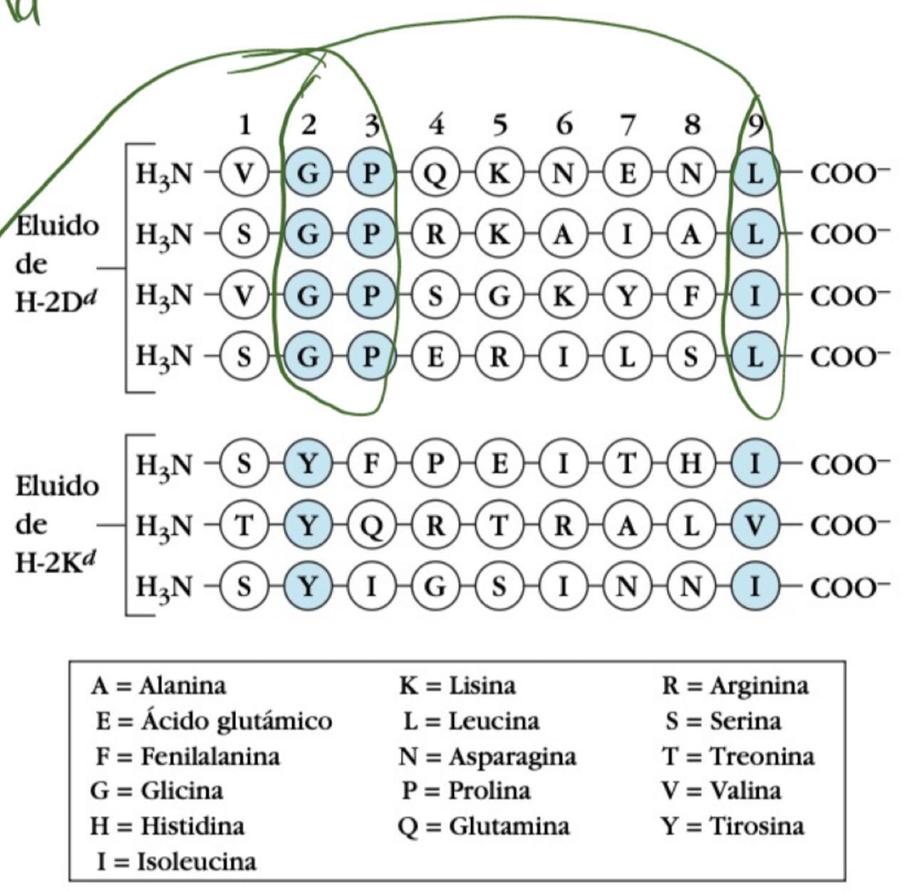 Todos los péptidos examinados hasta la fecha que se unen a moléculas clase I contienen un ancla en la posición 9 y una segunda en la posición 2 y/o 3.