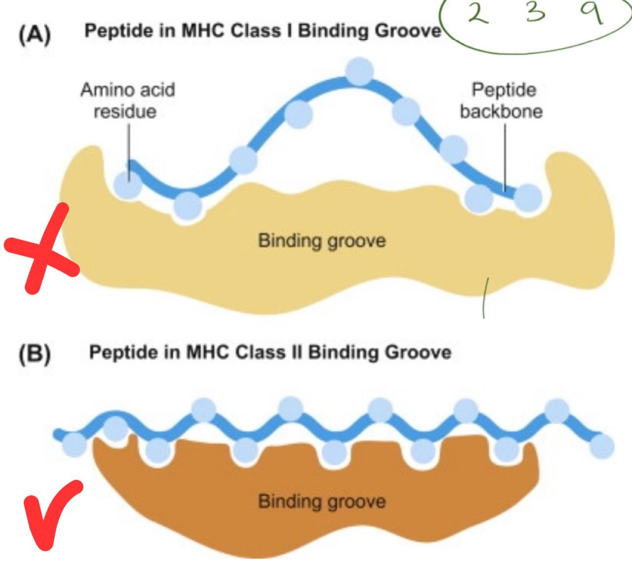 Los péptidos más largos pueden ajustarse dentro de la hendidura clase II, pero los 13 residuos centrales determinan las características de unión.