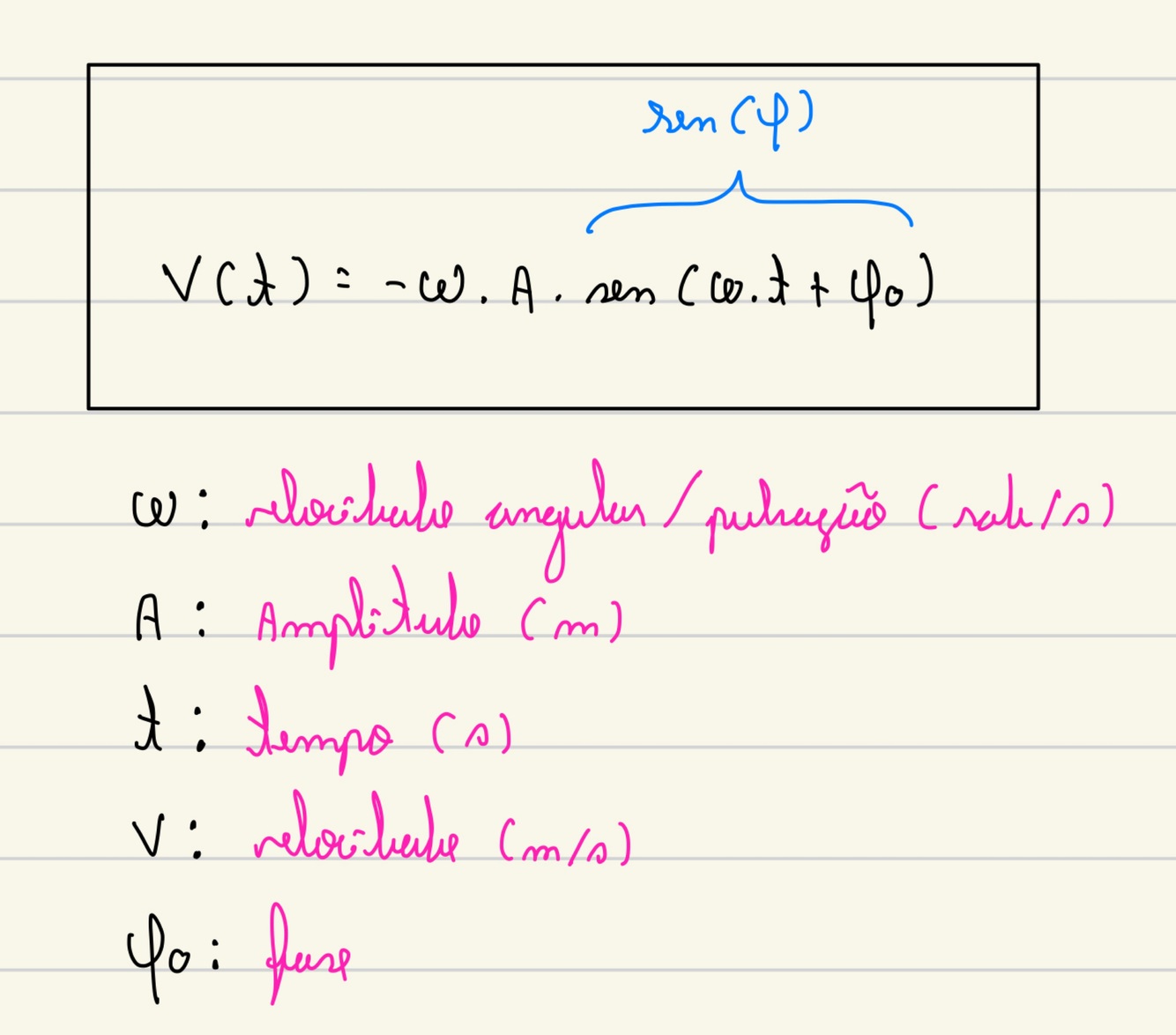 Qual a fórmula da velocidade em função do tempo em um MHS ?