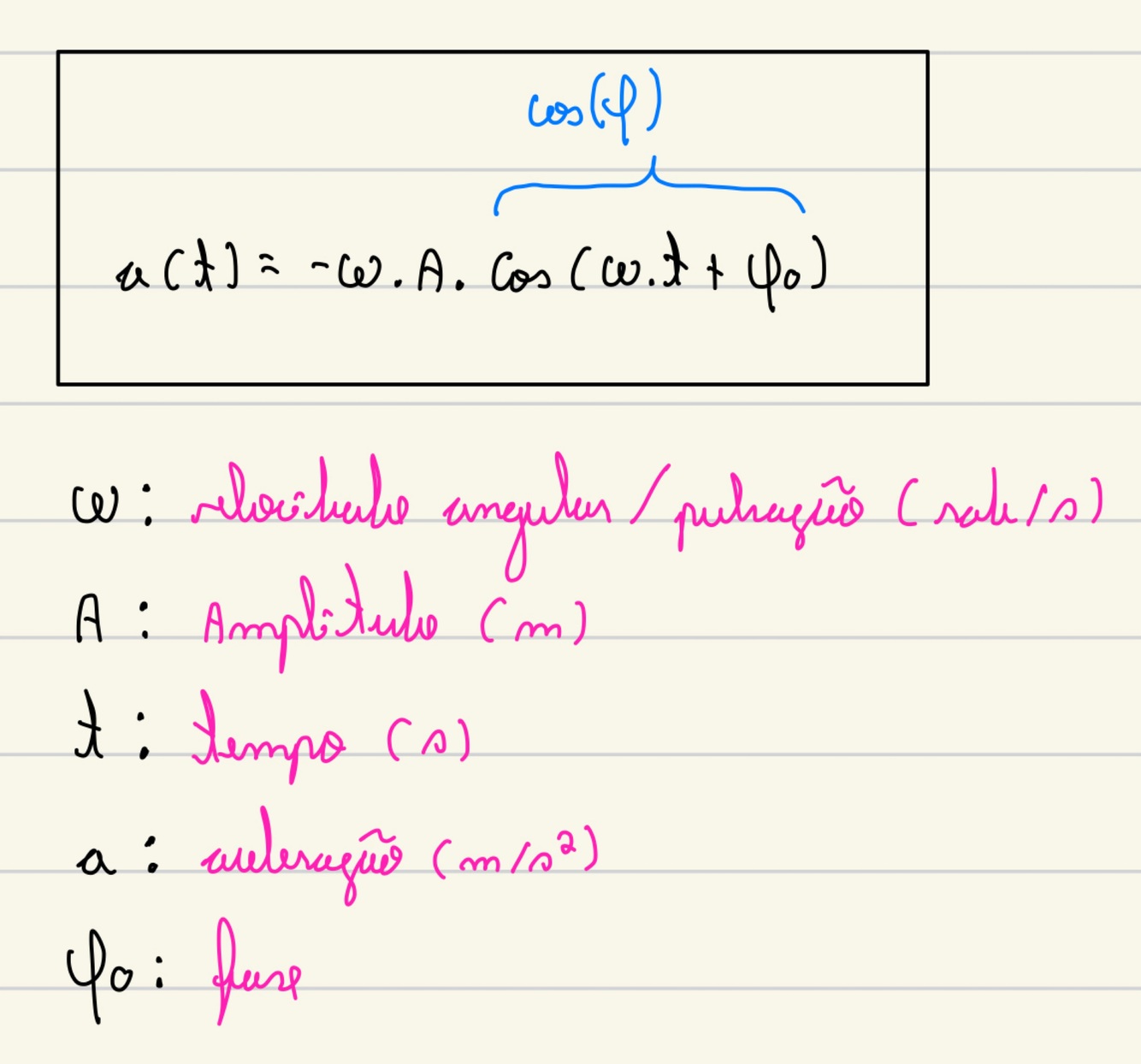 Qual a fórmula da aceleração em função do tempo no MHS ?