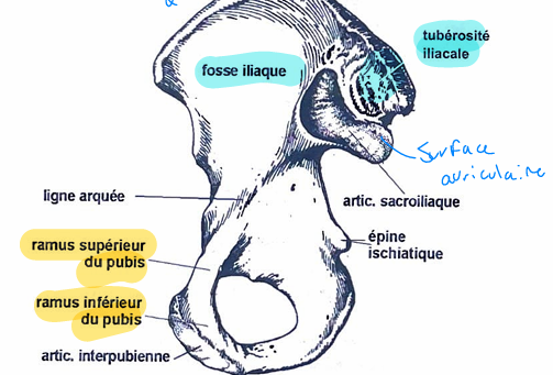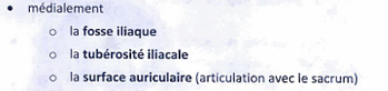 C’est quoi que l’on trouve médialement sur l’ilium?