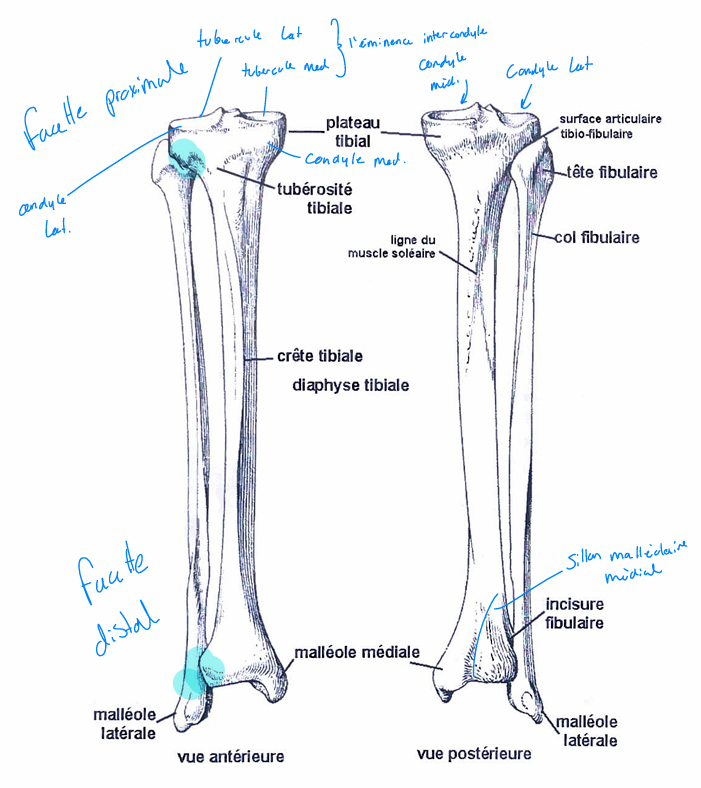 C’est quoi les 3 faces et 3 bords du tibia?