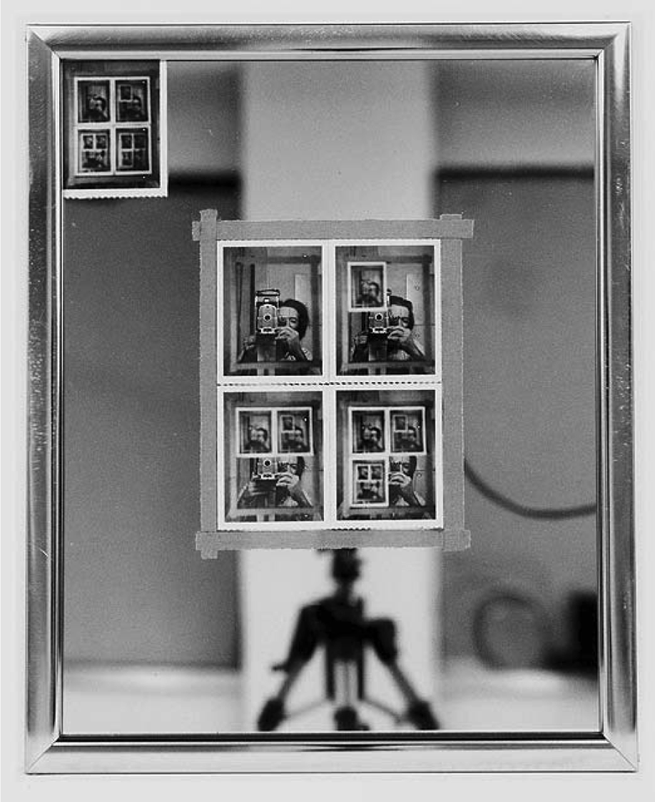 MICHAEL SNOW, AUTHORIZATION, 1969, INSTANT SILVER PRINTS (POLAROID 55) AND ADHESIVE TAPE ON MIRROR IN METAL FRAME,
