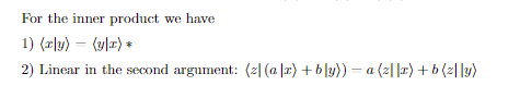 Give the properties of the inner product