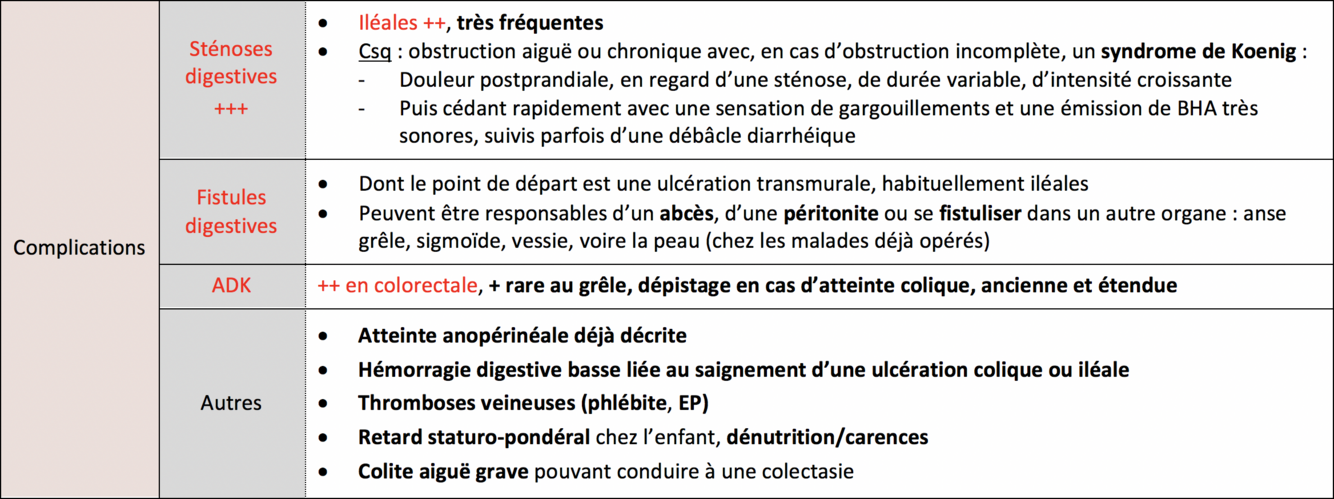 * Principales complications : cirrhose hépatique (cirrhose biliaire secondaire), obstruction biliaire (angiocholites +++), cancérisation (cholangiocarcinome)