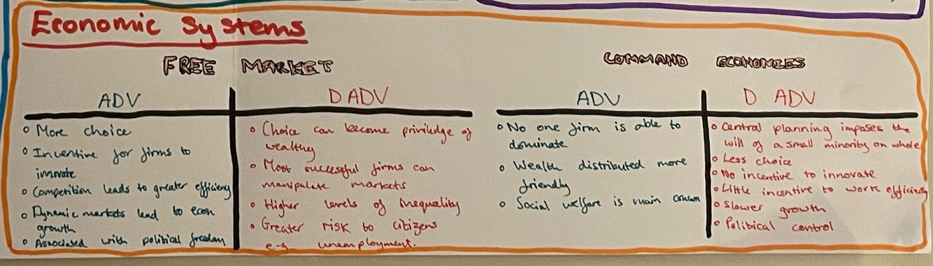 ADV/DIS ADV of command and free market economies