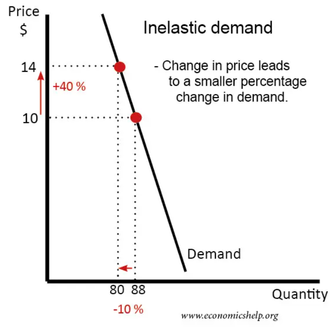 Inelastic - Direct relationship. If price increases then so does revenue and vice versa
