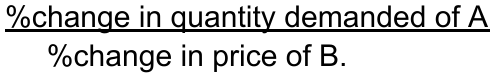 The responsiveness of demadn for one product (A) to the change in the price of another product (B)