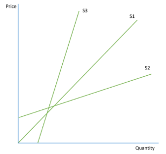 1<PES<∞ - Elastic PES, the quantity supplied changes by a larger percentage than price so supply is relatively responsive to price. The curve will be more sloping starting on the y axis