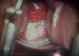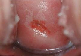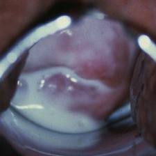 Your gynecology attending calls you into a room during a colposcopy to ask what you think of this finding. You say….