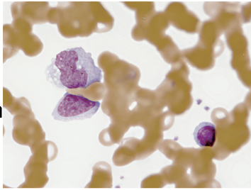 Cells on the left are atypical lymphocytes characteristic of EBV infection.
