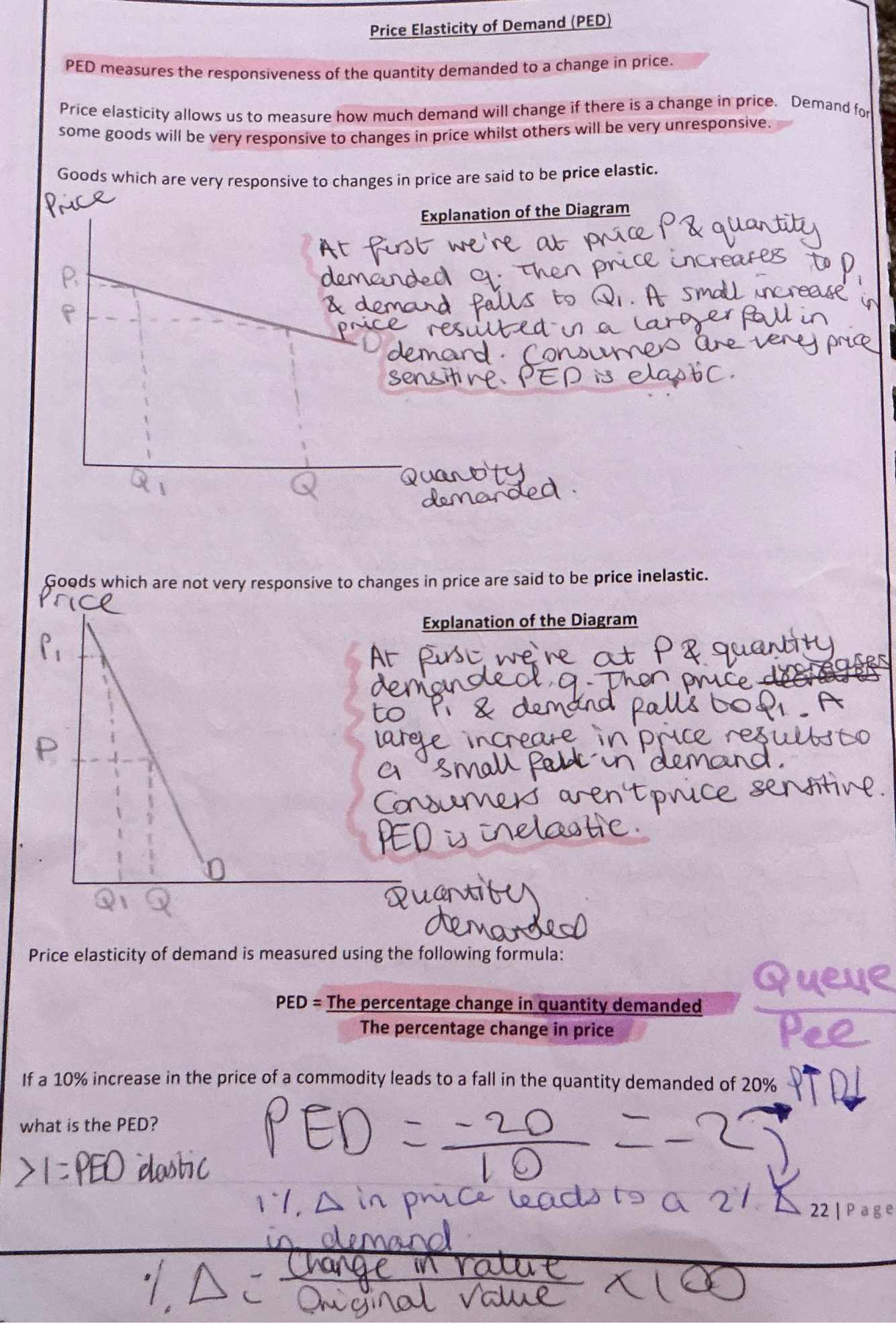 PED - measures the responsiveness of quality demanded to a change in price.