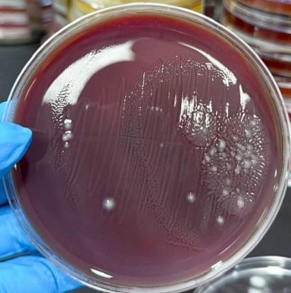 Colony Morphology: 4+, large, metallic sheen, Beta hem, corn tortilla odor, irregular