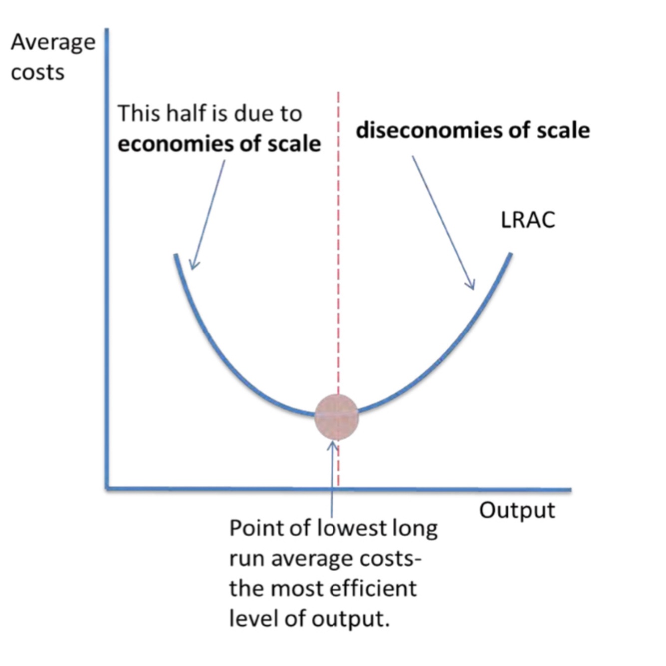Why does the average variable cost curves tend towards the average total cost curve as output increases?