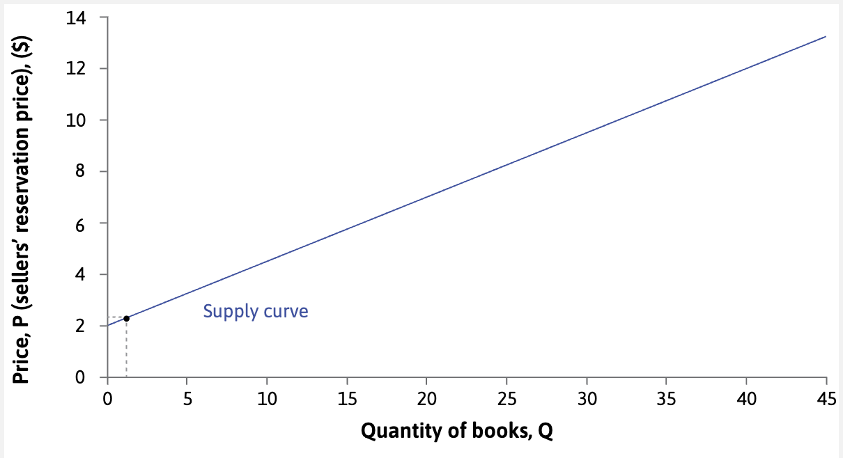 The supply curve slopes upward: the higher the price, the more students will be willing to sell.