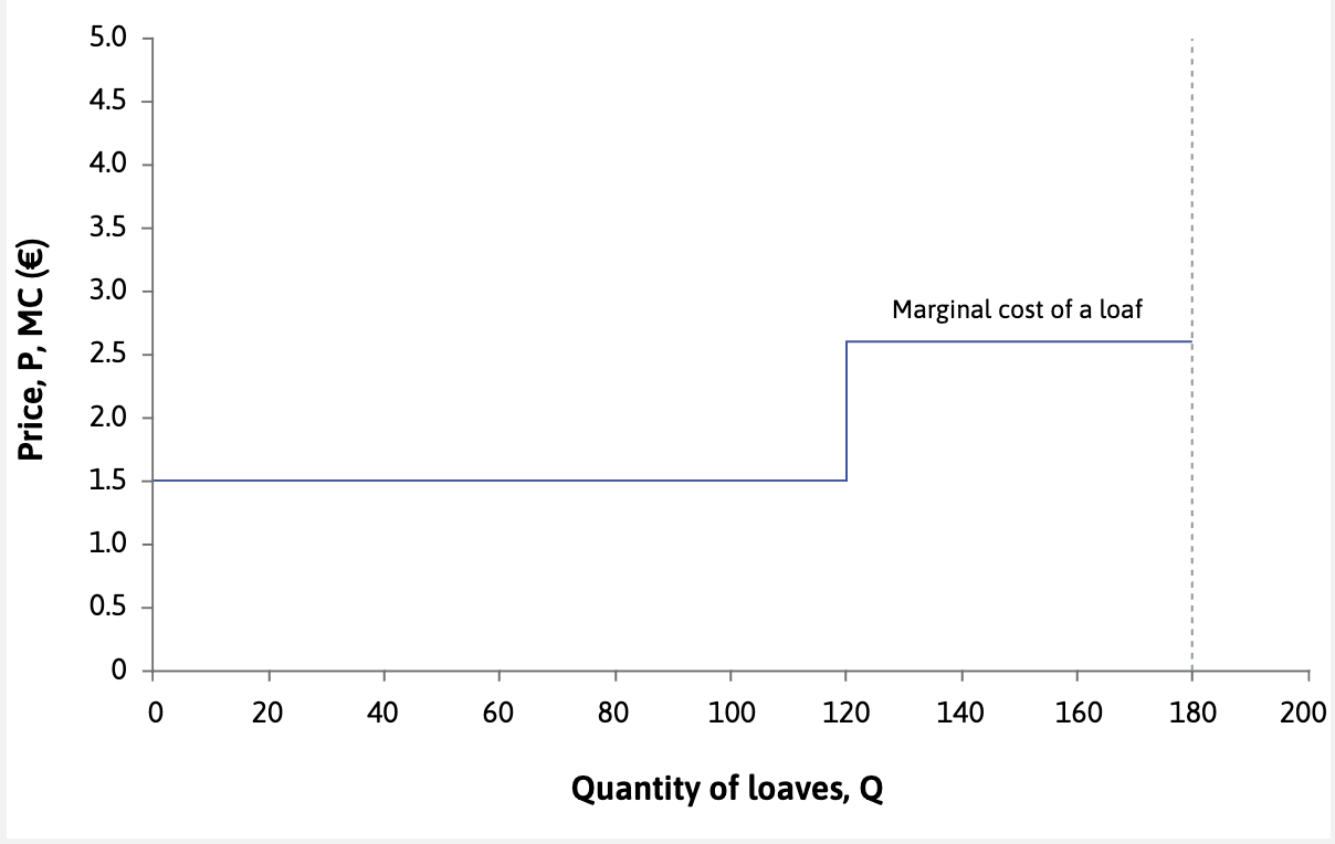 If more than 120 loaves are made, you will need to pay more wages as a firm, draw how this changes marginal cost?