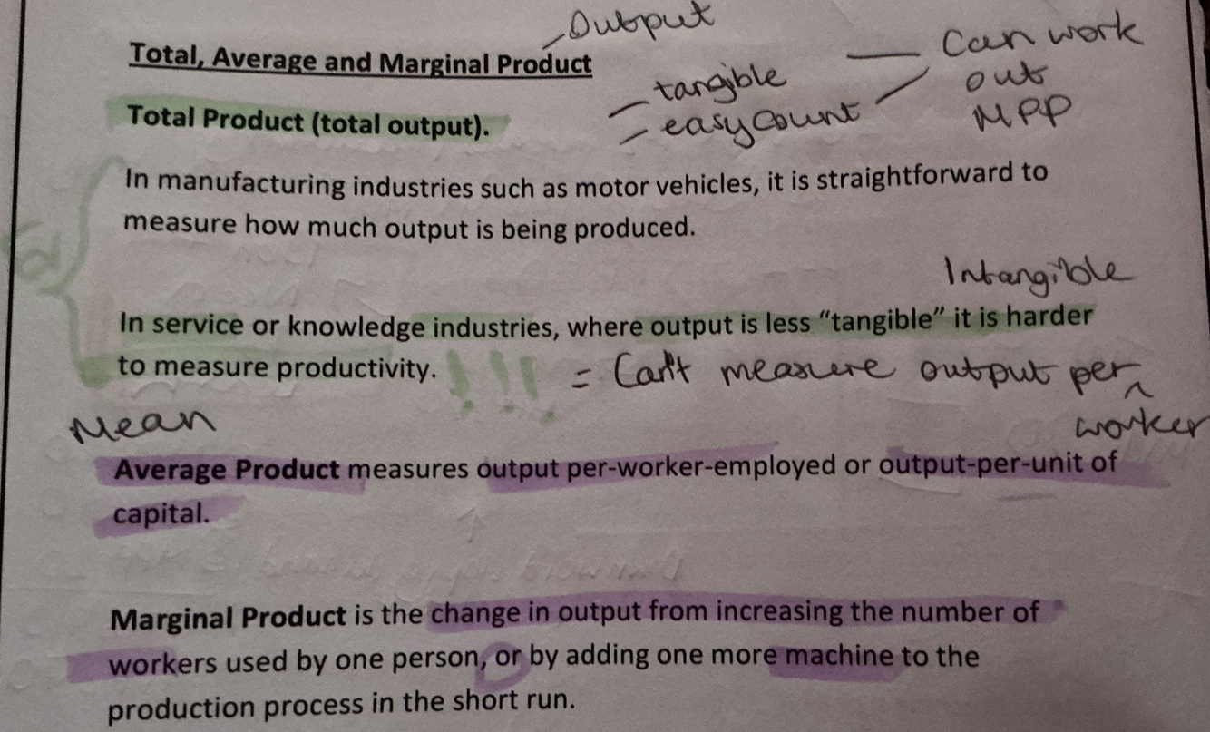 Total, average and marginal product