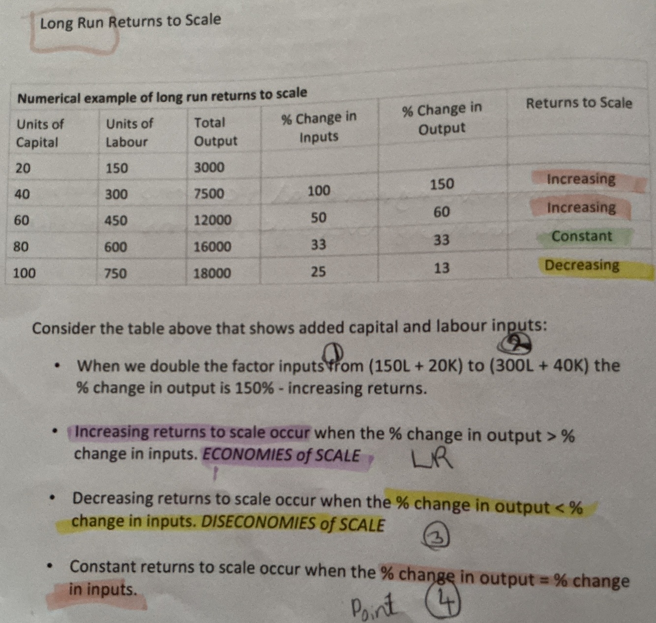 Economies of scale rise from increasing returns to scale in the long run