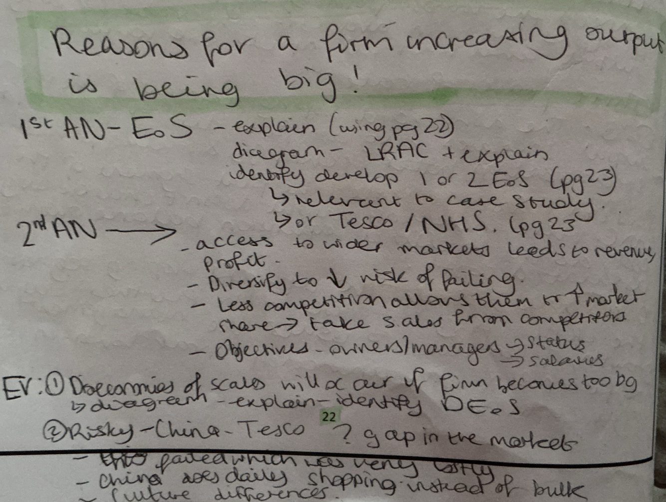 Reasons for a firm increasing output is being big