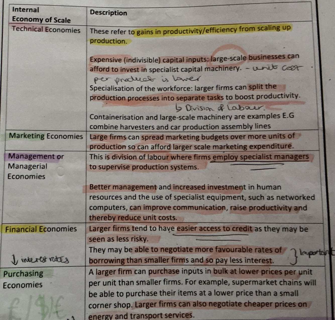 Technical, marketing, management, financial and purchasing economies