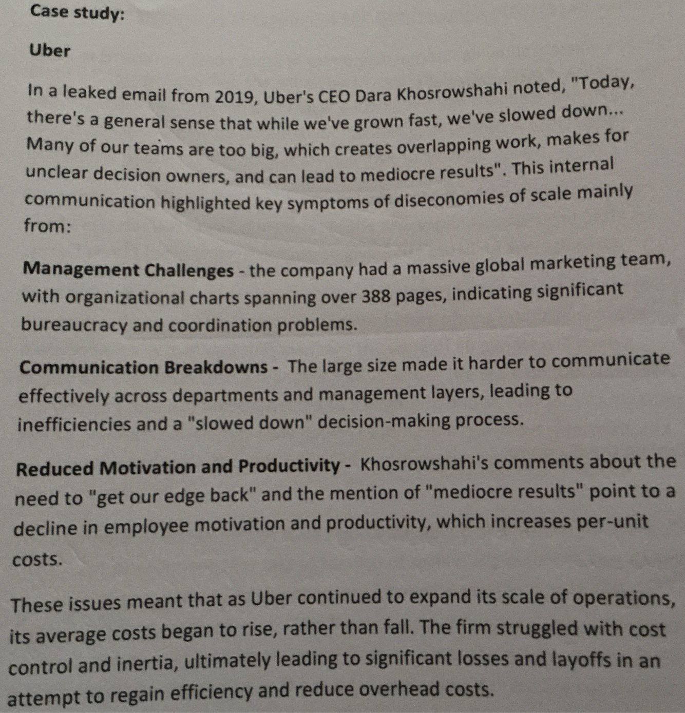The main case study for diseconomies