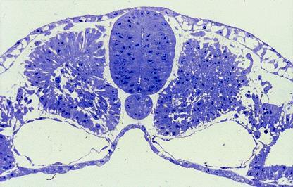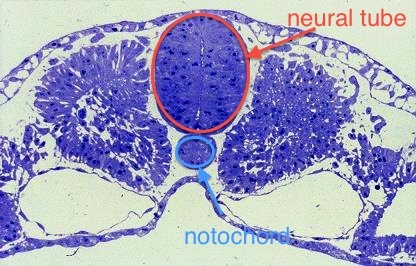 Identify the neural tube and the notochord in this H&E section of a chick embryo